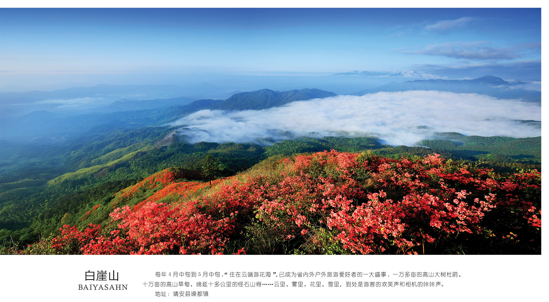 每年4月中旬到5月中旬,“住在云端游花海”,已成为省内外户外旅游爱好者的一大盛事,一万多亩的高山大树杜鹃、十万亩的高山草甸、绵延十多公里的怪石山脊……云里、雾里、花里、雪里,到处是游客的欢笑声和相机的咔咔声。 地址:靖安县璪都镇