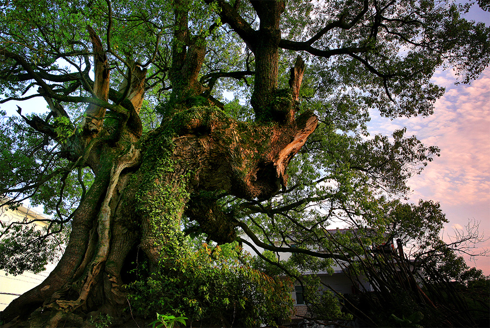 巨藤悬挂的千年古樟