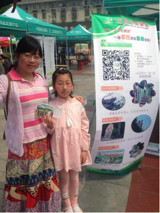 幸运游客领取景区门票留影