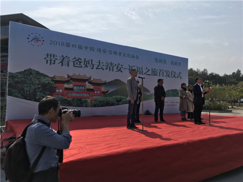 10月18日,由中国文化书院主办,宝峰孝文化协会承办的带着爸妈去靖安,重阳登高“观音岩”景区祈福之旅成功举行,首发仪式在靖安旅游集散中心举办。“您的笑,我的孝”带着爸妈去靖安---重阳登高观音岩活动