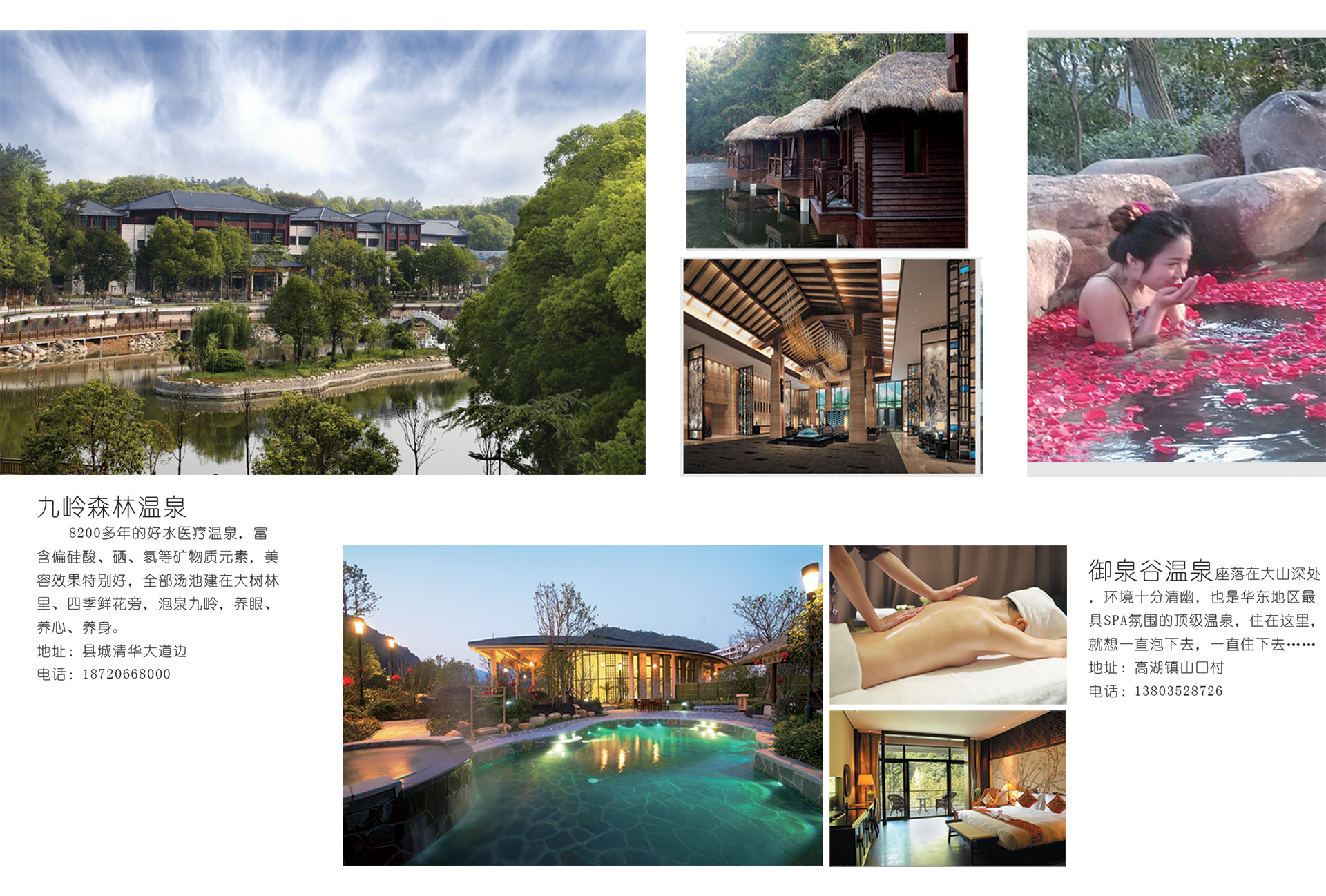 8200多年的好水医疗温泉,富含偏硅酸、硒、氡等矿物质元素,美容效果特别好,全部汤池建在大树林里、四季鲜花旁,泡泉九岭,养眼、养心、养身。