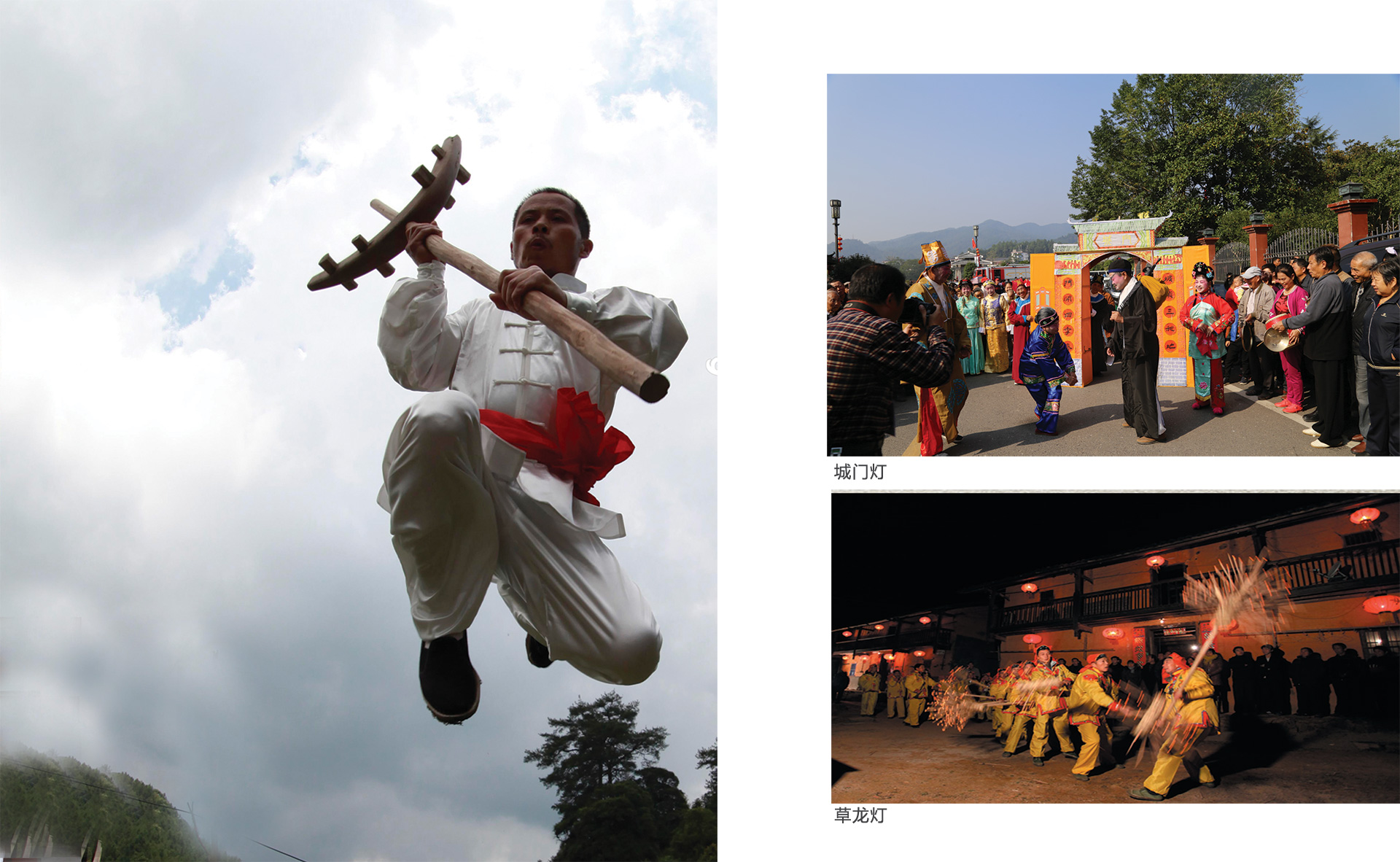 非物质文化遗产:看马灯船灯草龙灯、学钟家少林拳、尝客家果脯、做艾饼、磨豆腐、踩高跷……