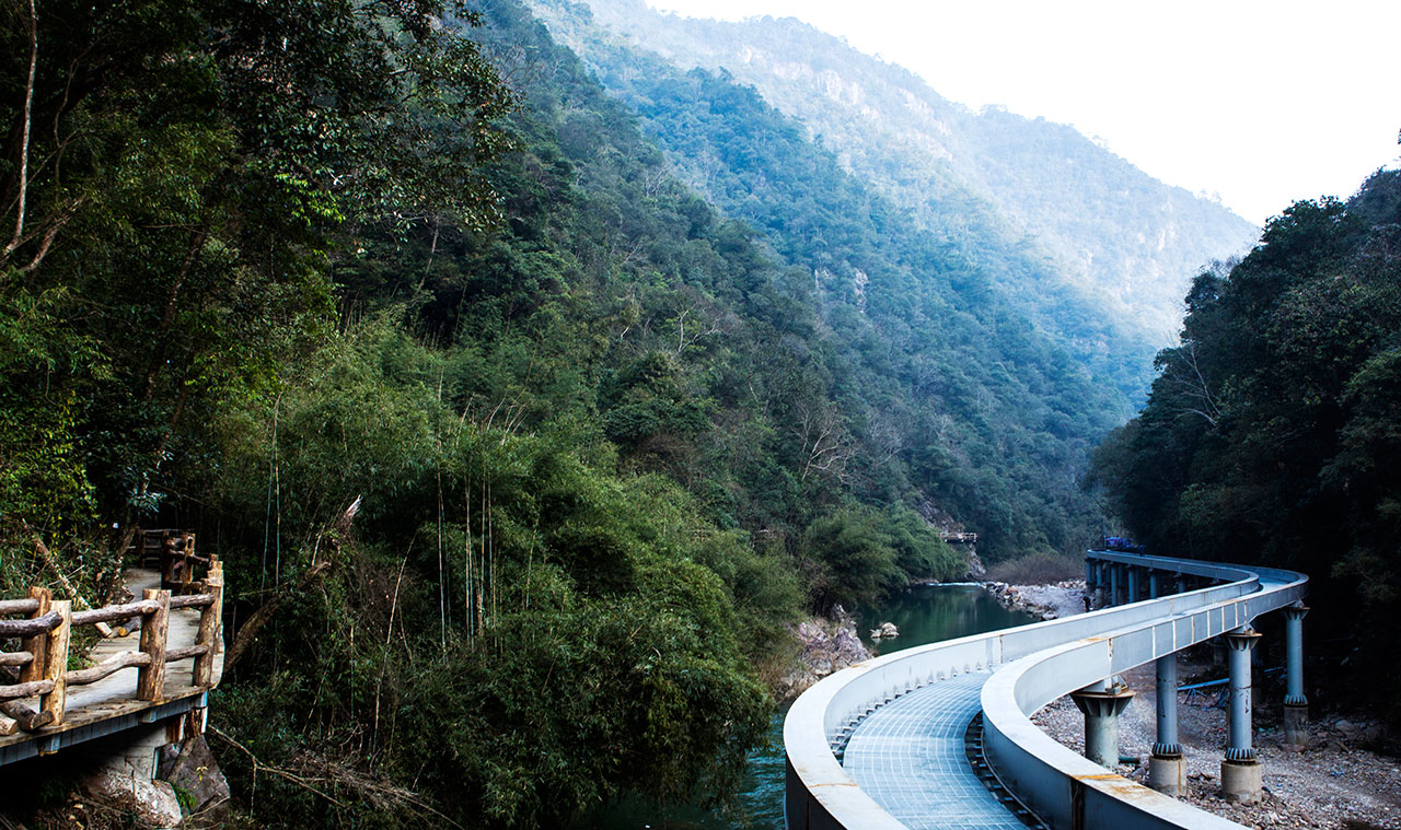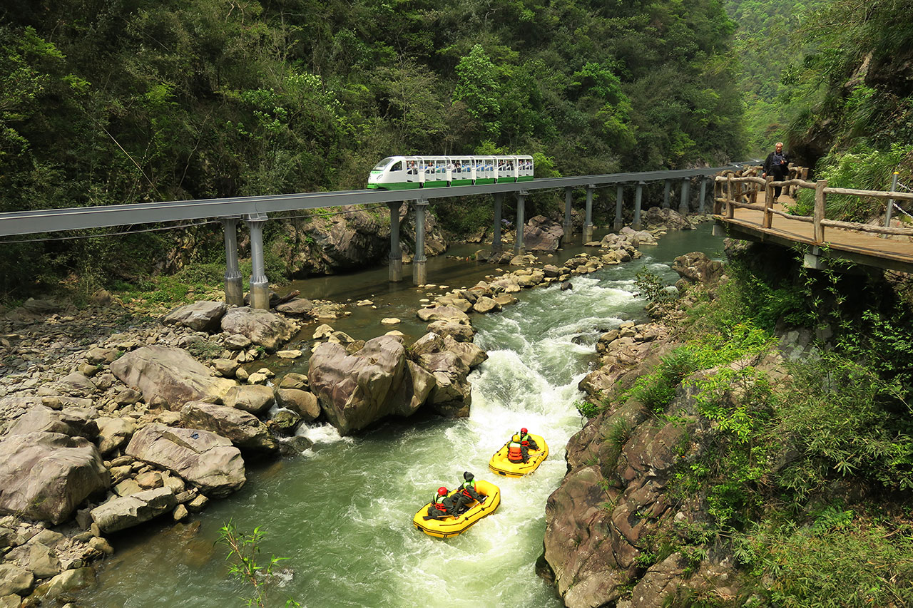 神奇大峡谷——森林高架轻轨(小火车)体验之旅。乘坐这条森林高架环保电动游览车驶进大峡谷,与三爪仑国家示范森林公园来一次亲密接触,小火车复线长度约7.6公里,单趟乘坐约20分钟。它时而驶上林梢,带您感受“踏林枝上舞”的奇妙乐趣;时而穿越于陡壑峡谷,带您领略峰峦叠嶂、古树参天、峡陡石怪的美景,偶尔还会与猕猴、松鼠不期而遇。